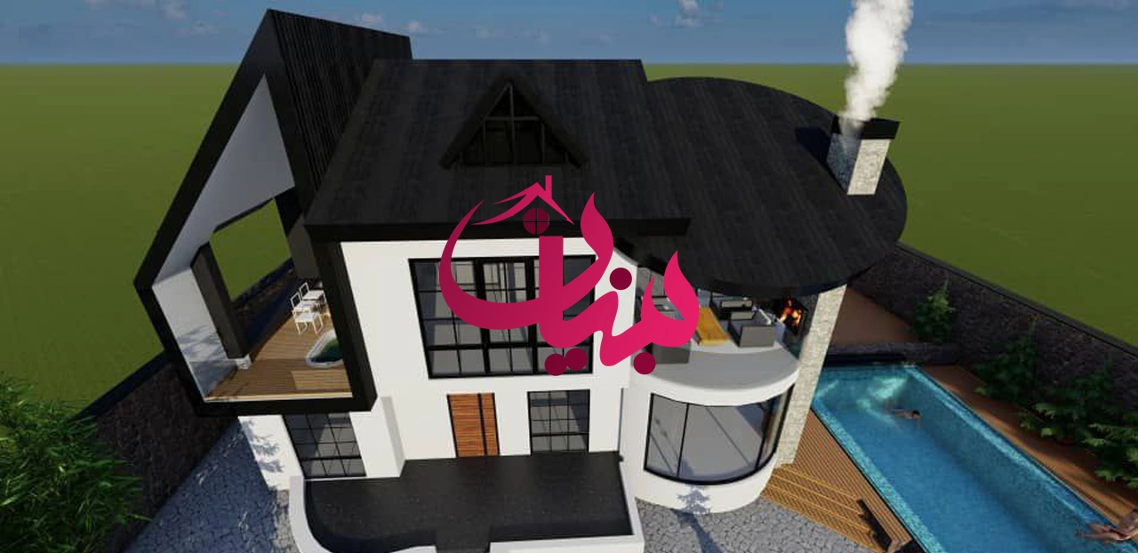 ۱۲. سقف شیروانی فلزی مدرن (Minimalist Metal Gable Roof)